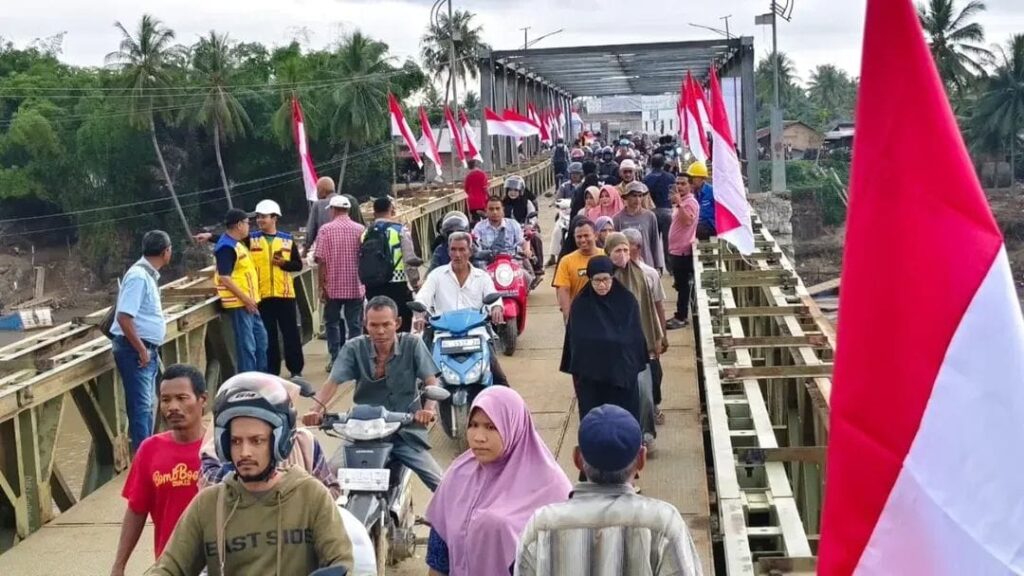 Jembatan darurat tersebut diresmikan melalui prosesi adat Peusijuk, sebagai simbol doa dan harapan agar jembatan dapat memberikan manfaat serta keselamatan bagi seluruh pengguna jalan.