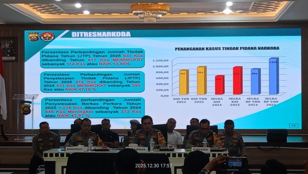 Polda Jambi menggelar konferensi pers akhir tahun untuk memaparkan hasil kinerja dan kondisi keamanan dan ketertiban masyarakat (kamtibmas), serta membahas rencana strategis guna persiapan memasuki tahun 2026 pada selasa (30/12/2025).